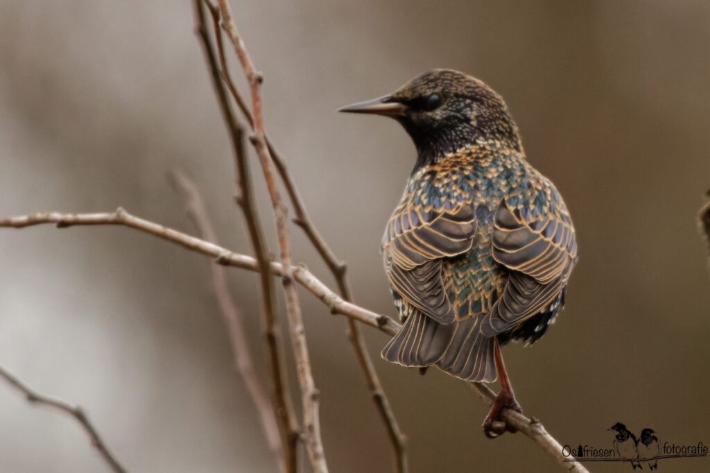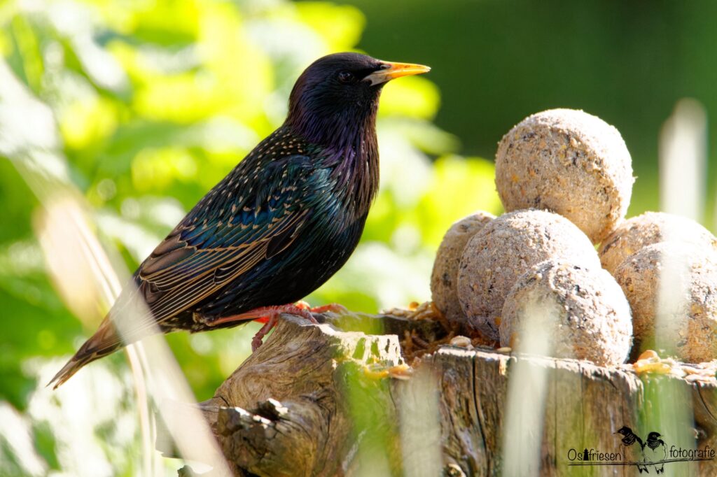 Er gehört zur Familie der… Trommelwirbel…Stare. im Frühling ist sein Gefieder schwarz-metallisch schillernd mit hellen Punkten. Im Winter weniger auffällig aber dennoch schwarz. Der Schnabel ist gelb wird im Herbst dunkler. Und etwas spitzer geformt. Er hat eine Körpergröße von 19 bis 22 cm und einen kürzeren Schwanz.